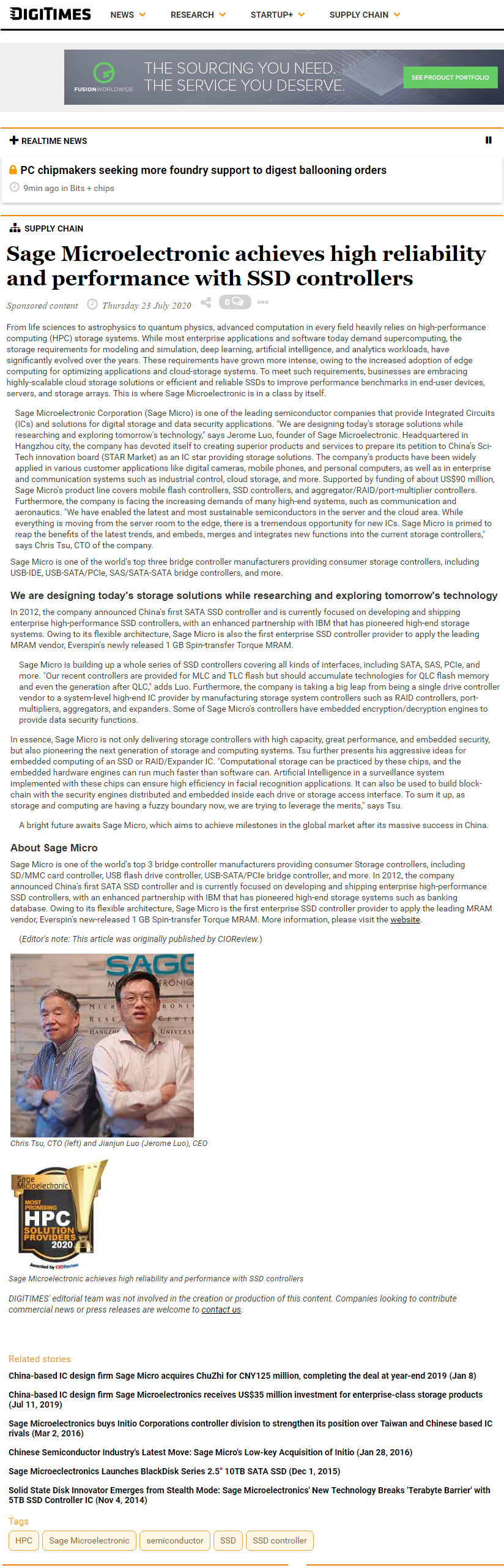 華瀾微是全球三大計算機橋(Bridge)控制器制造商之一,包括USB-IDE、USB-SATA / PCIe、SAS / SATA-SATA等橋接存儲控制器。 華瀾微不僅提供高容量,高性能和嵌入式安全性的存儲控制器,而且率先開發了下一代存儲和計算系統。公司正在從單一存儲驅動控制器供應商向企業級高端存儲控制器供應商邁出巨大的飛躍,研發生產企業級硬盤陣列控制器,包括冗余陣列(RAID)控制器、端口倍增器(Port-Multiplier)、匯集器(Aggregator)器和SAS擴展器(Expander)等高端芯片。