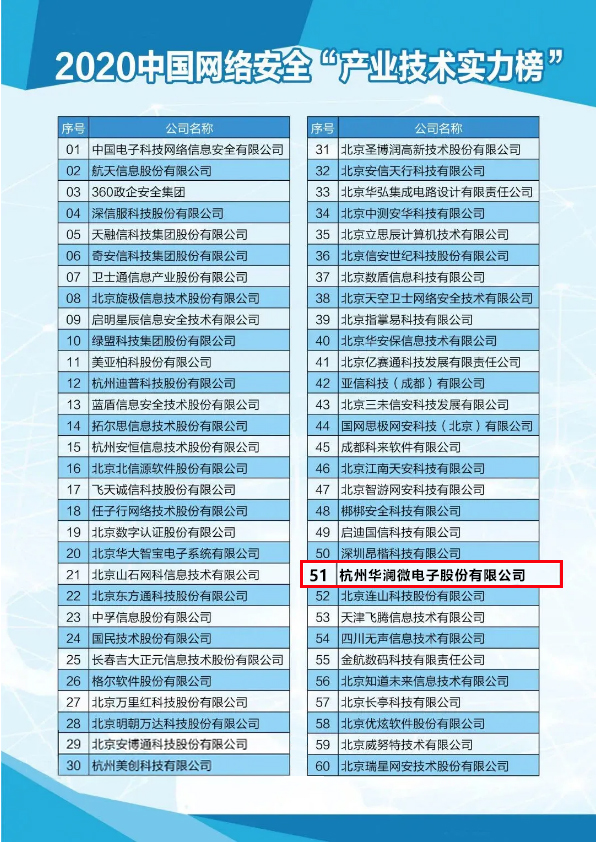 華瀾微榮登2020中國網絡安全“產業技術實力榜”!
